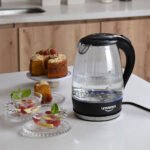 - Diseño y Capacidad: Esta tetera combina un moderno diseño en vidrio y acero inoxidable, soportando temperaturas de hasta 90°C. Su capacidad de 1.7 litros es ideal para preparar varias tazas de té o agua para infusiones, adaptándose tanto para el uso diario como para reuniones.